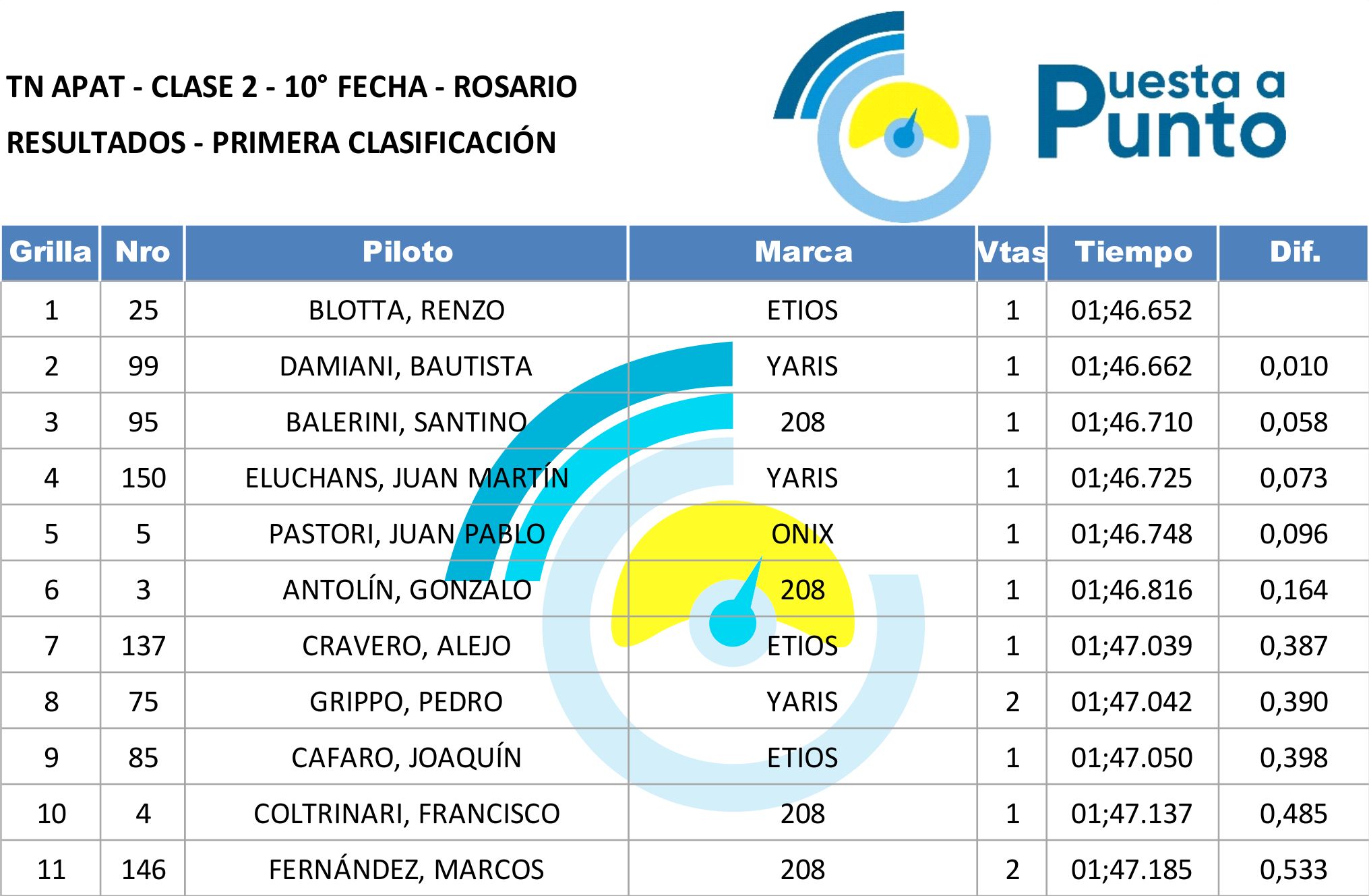 BLOTTA AL MANDO, EN UNA CLASIFICACIÓN APRETADÍSIMA