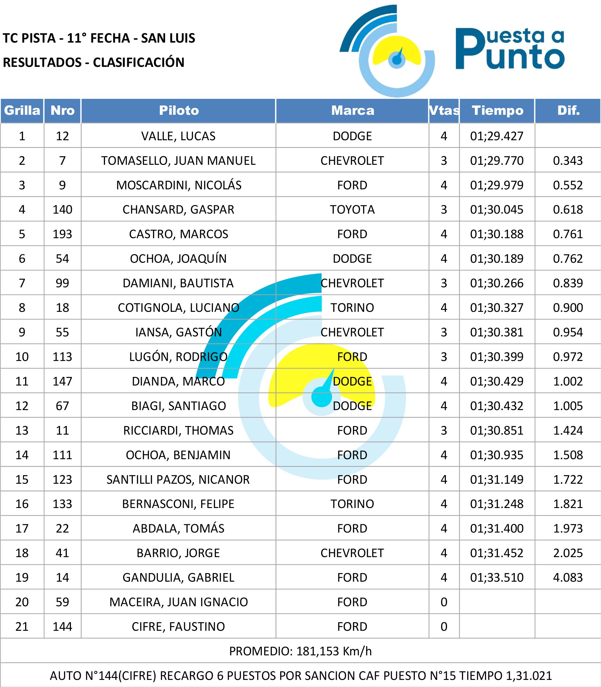 Arrancó la Copa de Plata a fondo con el TC Pista en San Luis, y Lucas Valle, afuera de los 12, se terminó quedando con la pole.