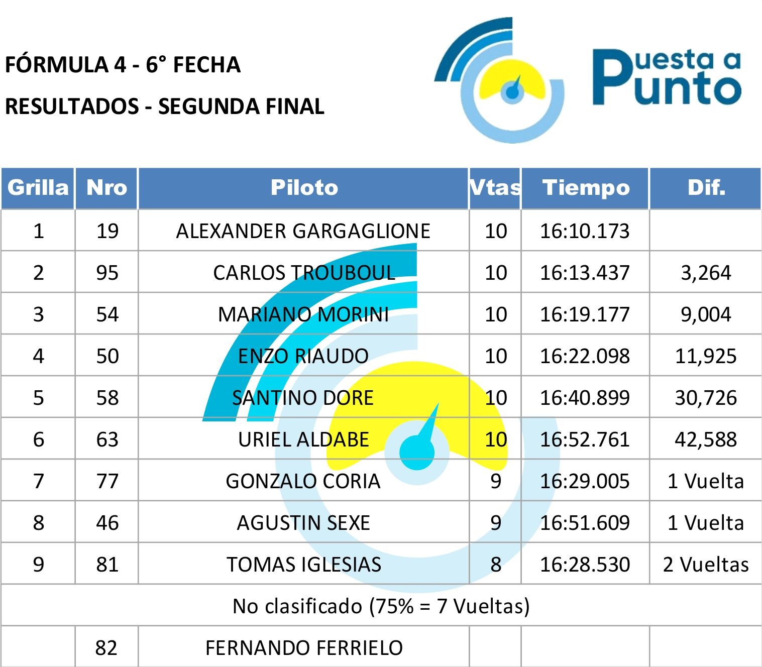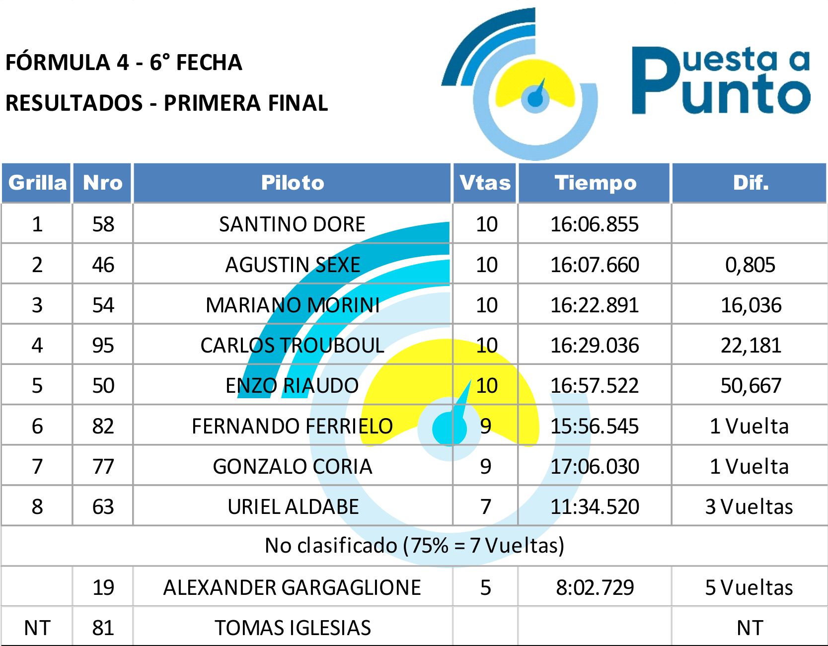 Los dos mejores pilotos de la tabla anual fueron los ganadores de esta sexta fecha del calendario. Aún así, tienen pegados a Sexe y a Morini.